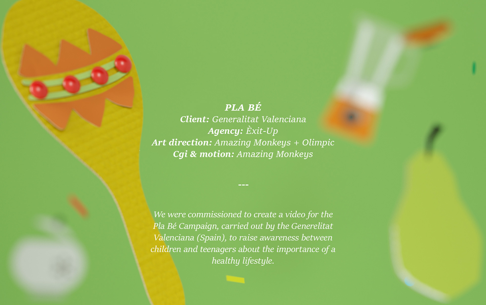 We were commissioned to create a video for the Pla Bé Campaign, carried out by the Generelitat Valenciana (Spain), to raise awareness between children and teenagers about the importance of a healthy lifestyle.